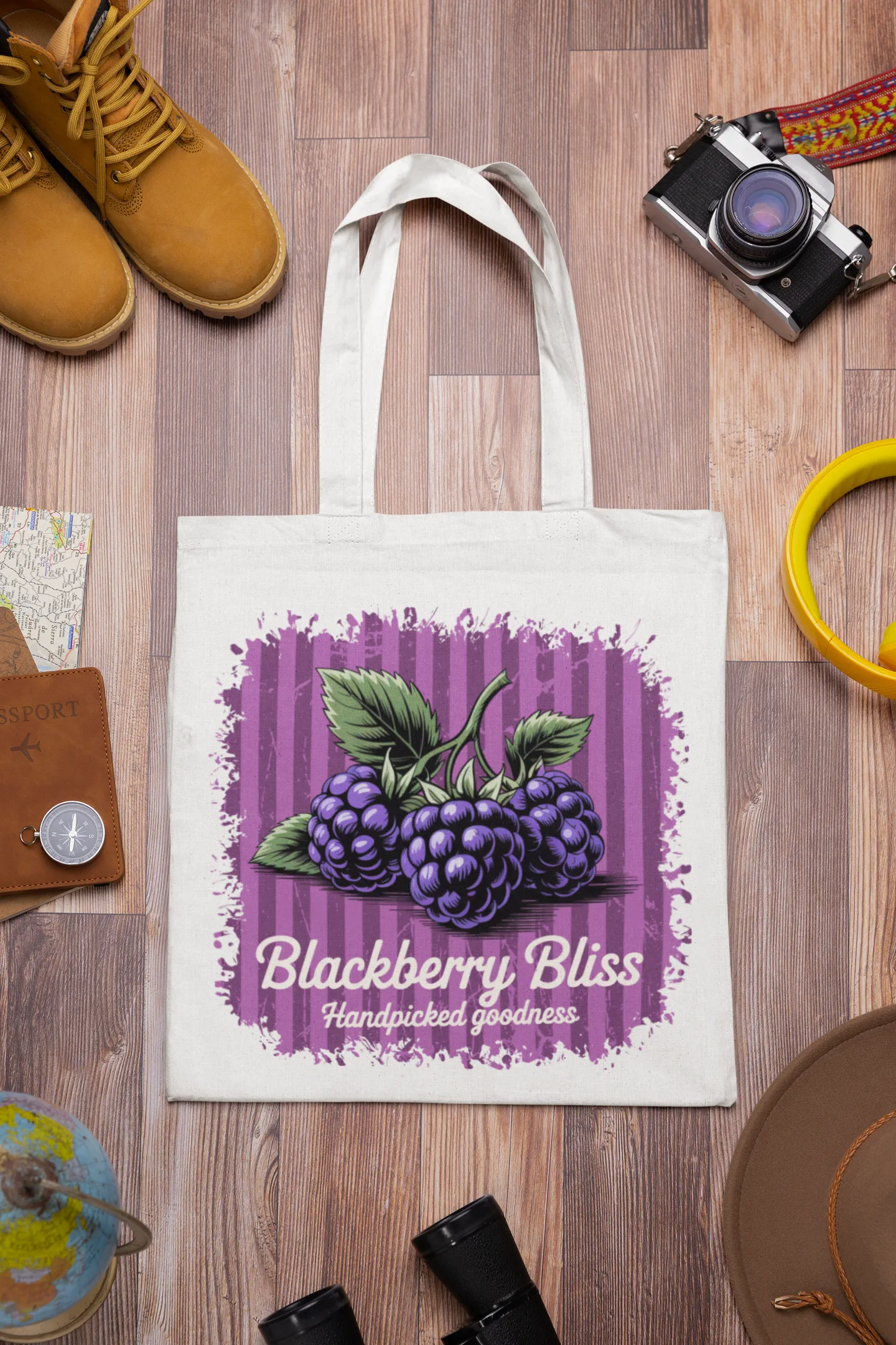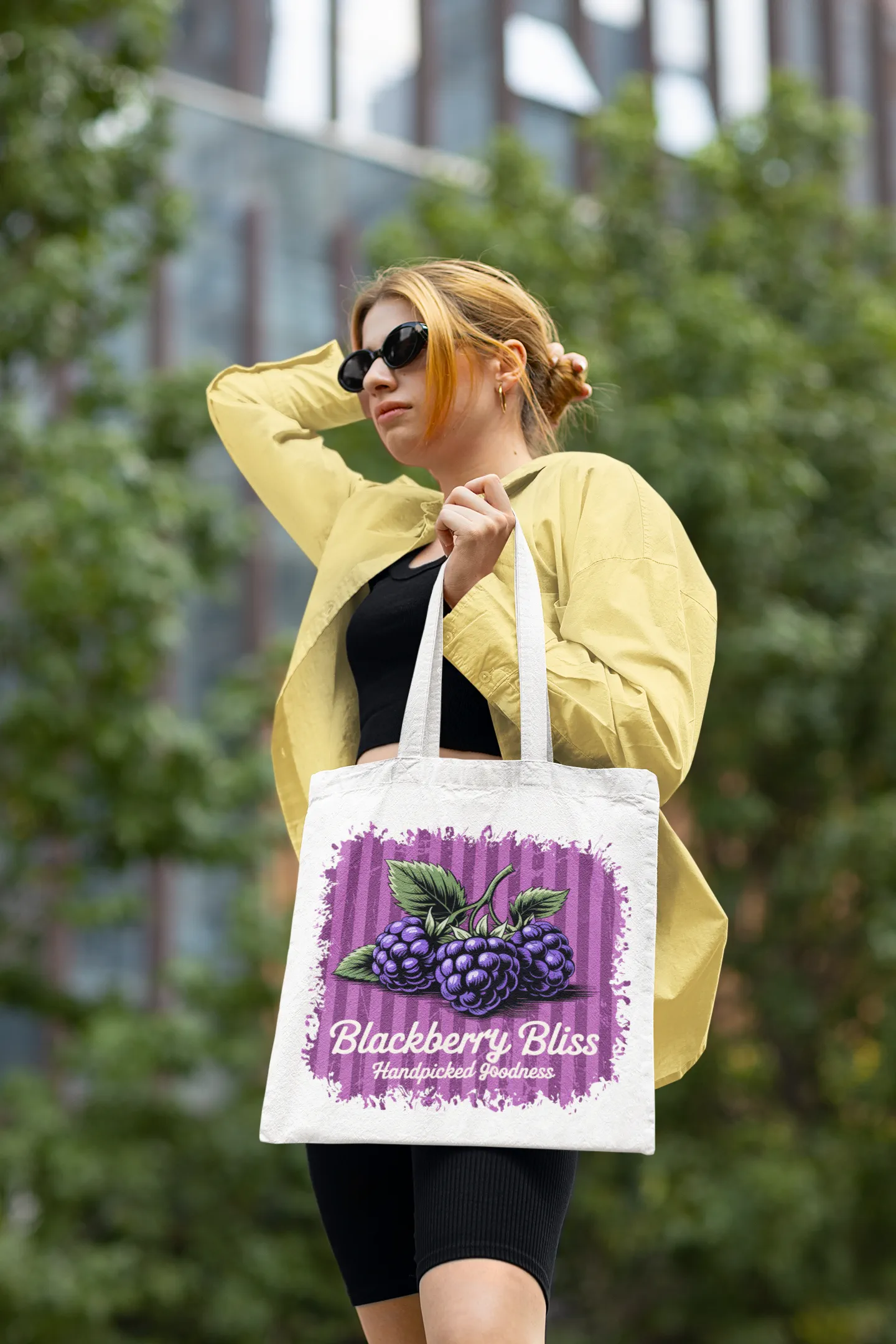 Domů Doplňky Nákupní tašky Blackberry Bliss | Fresh Fruits série, praktická bavlněná nákupní taška s potiskem