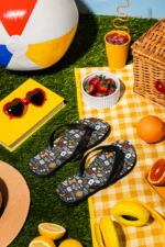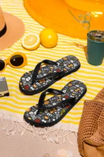 Elegantní a stylové plážové žabky v klasickém provedení s efektním grafickým potiskem. Jsou vyrobené z kvalitních materiálů pomocí moderních technologií s vysokým poměrem ruční práce. Vhodné nejen na pláž či k bazénu.