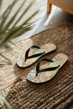 Elegantní a stylové plážové žabky v klasickém provedení s efektním grafickým potiskem. Jsou vyrobené z kvalitních materiálů pomocí moderních technologií s vysokým poměrem ruční práce. Vhodné nejen na pláž či k bazénu.