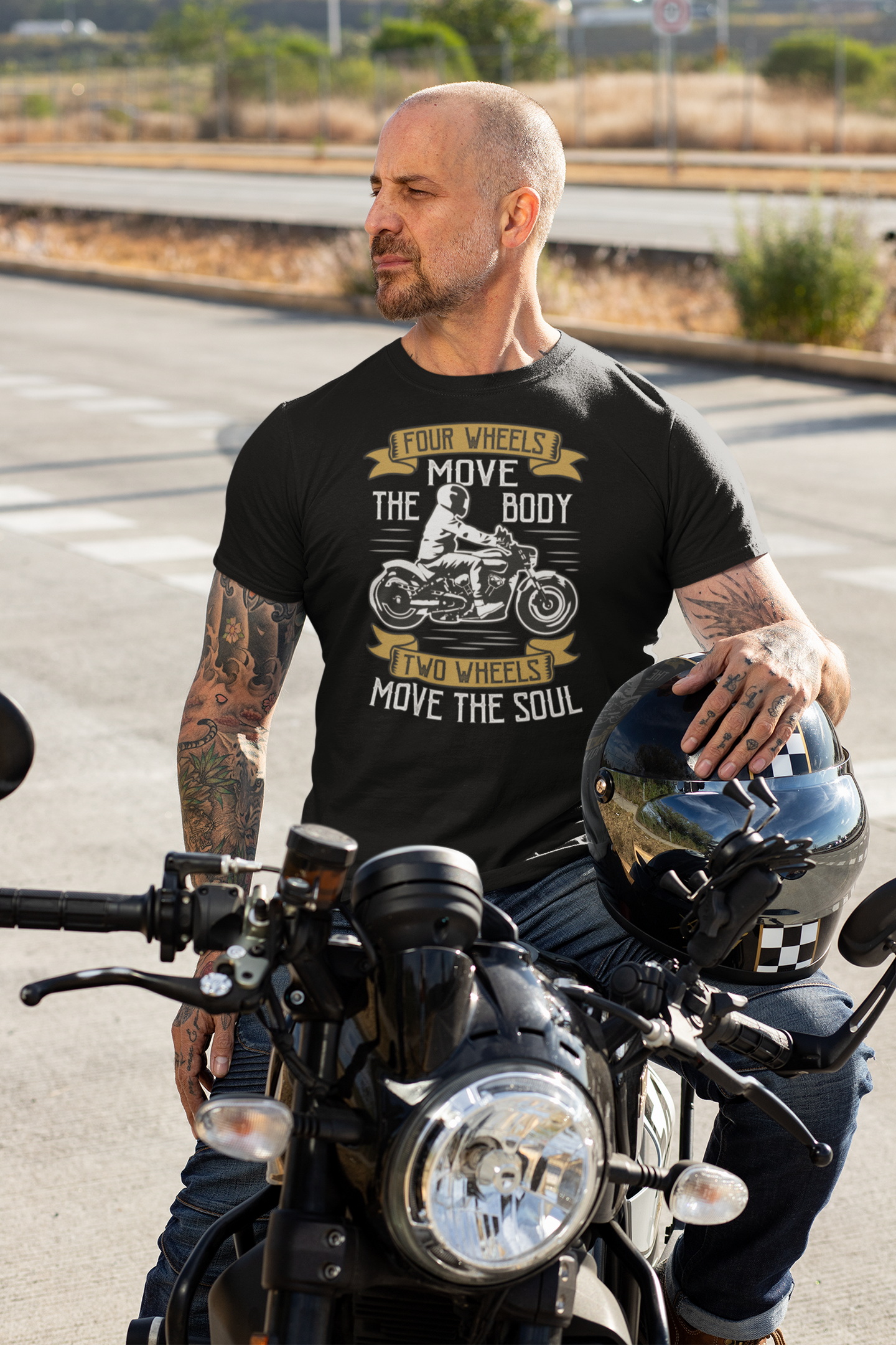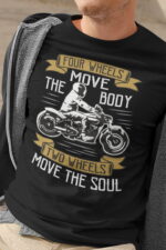 Potisk s motivem motorkářské filozofie předurčuje toto tričko především pro příznivce „splašených trubek“, jak se někdy hlučným a rychlým motorkám říká.