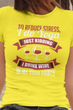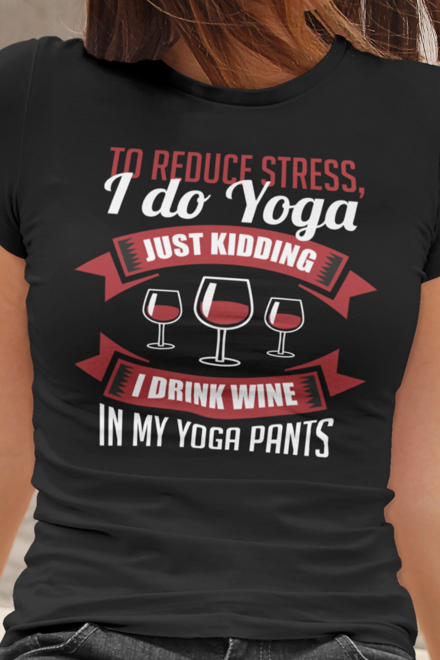 Vtipné dámské bavlněné tričko s tématikou vína a jógy.